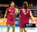 もうひとつの日本ペア、前田美順・垣岩令佳組は、世界2位のデンマーク、クリスティナ・ペダーセン/カミラ・リタ・ユール組と対戦。過去2戦は敗れているものの、いずれもファイナルゲームまでもつれる試合で、世界ランクも6位に浮上した日本2番手ペアの「3度目の正直」に期待がかかった。しかしふたを開けてみると、第1ゲーム前半こそ競り合いとなったが、とりわけ第2ゲームに入ると完全に格上デンマークペアのペース。一方的な展開となり、流れを引き戻すきっかけすら見いだせないまま完敗した