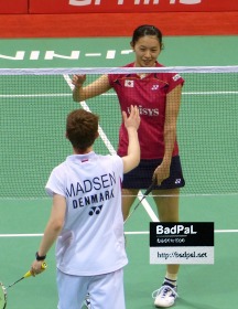 続いて登場したのは、高橋礼華・松友美佐紀組。「相手がデンマークと聞いて、最悪と思った(苦笑)」というが、試合が始まってみると、これまで苦にしてきた難敵を終始圧倒し、21-12,21-13の得点以上に内容で完勝した。試合後、何がうまくいったのか聞いたところ、「昨日の負けで相手が崩れていた。前日敗れたことで向かってくると思っていたが、逆に嫌がって引いているのが分かり、そこをついていけた」と説明した。その上で、この後、何度も対戦する機会があるデンマークペアに苦手意識を植え付けることができたのは、自分たちにとって今大会の大きな収穫と指摘した