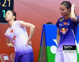 ツァン・ナン/ツァオ・ユンレイ(中国、世界1位)〈21-19,21-17〉プラビーン・ジョーダン/デビー・スサント(インドネシア、世界19位)