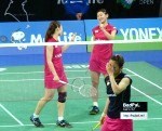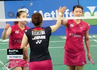 デンマークオープンSSプレミア準決勝、女子ダブルスの日本勢対決は、高橋礼華・松友美佐紀組が前田美順・垣岩令佳組にストレート勝ちし、2012年に続き2度目の決勝進出を果たした この試合のカギは、30分を超えたオープニングゲーム。前半は前田・垣岩組がリードしたが、後半早々、高橋・松友組が連続得点を決め逆転に成功。その後、前田・垣岩組が食い下がり1点差(19-18)まで詰めよるが、終盤長いラリーを制した高橋・松友組が振り切り先制する。続く第2ゲームは、勢いに乗った高橋・松友組が中盤以降引き離し、21-12で快勝した 高橋・松友組は試合後、BadPaL に対し、