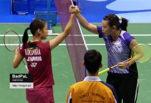 女子ダブルスの高橋・松友組は、前週のチャイナオープンSSプレミア準決勝で敗れた世界チャンピオンの中国ツァオ・ユンレイ/ティエン・チン組との再戦に挑んだ。第1ゲームは2度の連続失点で前半につけられた点差を後半さらに広げられ、あっさり落とす。第2ゲームに入るとリズムをつかみ前半を11-6とリードして折り返す。しかし後半開始直後、追い上げを許して13-14と逆転されると、ここから何もできないまま、7連続得点を決められ完敗した。ツァオ/ティエン組にはこれで、2013年シンガポールオープン、14年オーストラリアンオープンに続き、SS決勝3敗目