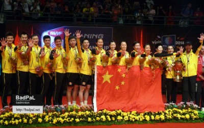 日本以外に決勝トーナメントに進むことが予想される7チームの中で、客観的に判断して日本を上回る戦力を有しているのは、前回優勝の中国と準優勝の韓国。日本の弱点である混合ダブルスを含む5種目すべてに強豪を配する 大方の予想を覆し日本が初優勝を成し遂げた昨年5月のトマス杯の例があるため予断は許さないが、とりわけ自国で6大会連続10度目の優勝を狙う中国に日本が勝つのは至難の業と言えよう