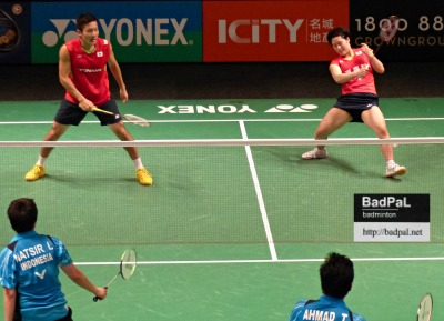 日本勢最後に登場した混合ダブルスの園田啓悟・福万尚子組は今大会第2シード、世界ランク3位インドネシアのタントウィ・アーマド/リリアナ・ナッチル組に挑み、第1ゲームを奪う。しかし第2ゲームを17-19まで詰め寄りながら落とすと、ファイナルゲームは元世界チャンピオンに地力の差を見せつけられ、敗退した