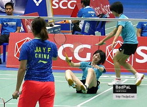 【女子ダブルス】 チェン・チンチェン/ジア・イーファン(中国、第3シード)〈14-21,21-18,18-21〉ドゥ・ユエ/リ・インフェイ(中国)