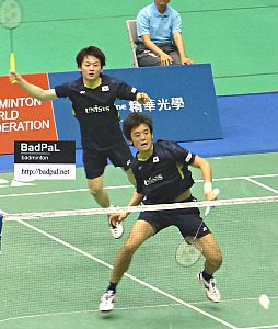 今大会、日本勢で一番気を吐いているのが若い金子祐樹・井上拓斗組だ。1回戦でいきなり第2シード、世界3位の中国ホン・ウェイ/チャイ・ビアオ組を破る番狂わせを演じ、2回戦でも世界ランク上位のインドネシアペアをねじ伏せた