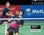 ダブルスではもう1組、平田典靖・橋本博且組が第2戦インドオープン以来となるベスト8入りを果たした。父親逝去のため中国フー・ハイファン選手が棄権したことで1回戦は不戦勝。2回戦の相手はリオデジャネイロ五輪出場を目指してペアを再結成し、世界ランクを22位まで上げてきたマレーシアのクー・ケンケット/タン・ブンヒョン組。厳しい戦いになることが予想されたが、第1ゲームを完勝すると、第2ゲームも終盤追い上げられながら22-20で振り切り、ストレート勝ちを収めた