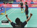 同時進行で行われた男子準決勝のもうひと試合、インドネシア対インドはいきなり、インドの先鋒キダンビ・スリカンス選手がインドネシアのトミー・スギアルト選手をフルゲームの末に倒したことで、会場内はヒートアップ。自国開催の大会でファイナリストとなる期待に色めきたった。しかし男子ダブルスで世界2位のヘンドラ・セティアワン/モハンマド・アーサン組が難なく勝ち試合をふりだしに戻すと、続く2種目もインドネシアが取って、インドの決勝進出の夢は消えた。ただアジア団体戦選手権でベスト4に入ったことで、5月のトマス杯出場権は確保している