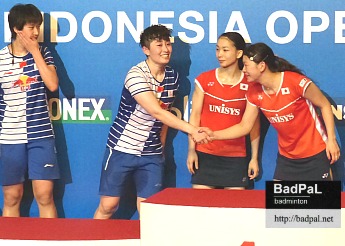 ファイナルゲームは勢いづいた中国ペアが先行し、日本ペアが追いかける展開で進む。前半を8-11と3点ビハインドで折り返すが、後半は互いに相手の球をいかに上からたたいて攻撃に転じるか、主導権奪取を狙ったラリーが続く。すると日本ペアの前がかりの姿勢が徐々に機能し中国ペアを押し込みはじめる。とりわけ15-15以降は、強打の中国ペアとの真っ向からの打ち合いにも力負けしない高橋・松友組の攻撃力が勝り、6連速得点を決め、インドネシアオープンでは日本女子選手初の栄冠をつかみ取った