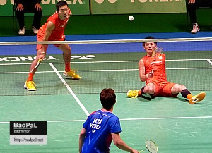 ヘンドラ・セティアワン/モハンマド・アーサン(インドネシア、世界6位)〈13-21,21-18,15-21〉リュウ・ユーチェン/リ・ジュンフイ(中国、世界14位)