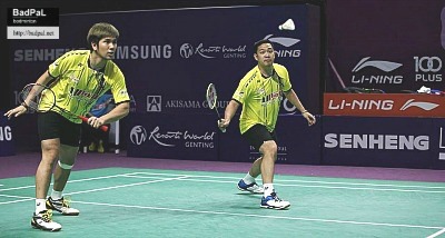 【男子ダブルス】 クー・ケンケット/ボディン・イサラ(マレーシア/タイ)3〈11-7,10-11,11-5,7-3※30分打ち切り〉1ルキ・ヌグルホ/ムハンマド・シャワル(インドネシア/マレーシア)