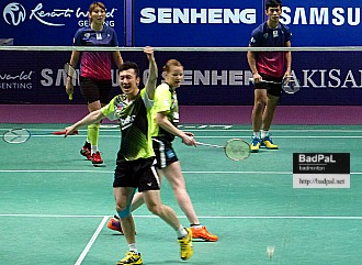 第3種目の男子ダブルスは、プタリンジャヤBCをけん引するマレーシアのベテラン、クー・ケンケット選手と韓国キム・サラン選手のペアが、1ゲームを失うもポイントゲッターの役割をしっかり果たし、通算のゲームカウントを7対7のタイに戻す。さらに続く混合ダブルスでは、国際大会での経験豊富な韓国シン・ベクチョル選手がパートナーを引っ張り逆転勝ち。1ゲームのリードを奪って最終の第2男子シングルスにつないだ