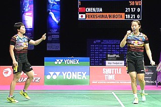女子ダブルスの決勝には、準々決勝で第3シード、準決勝で第2シードを連破し、初出場ながら世界タイトルへの挑戦権を自らつかみ取った福島由紀・廣田彩花組が登場。第1シードの高橋礼華・松友美佐紀組をストレートで下して勝ち上がった第4シードの中国チェン・チンチェン/ジア・イーファン組と対峙した