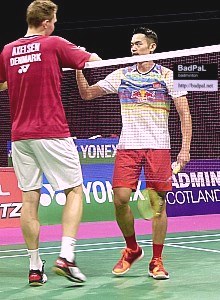 【男子シングルス】 ビクター・アクセルセン(デンマーク、世界3位)<22-20,21-16>リン・ダン(中国、世界7位)