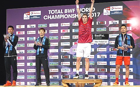 アクセルセン選手は昨年末、年間王者を決めるSSファイナルでも優勝を果たしているが、「SSと、五輪/世界選手権は別物」と指摘。「世界選手権決勝のコートに立ち、しかも小さいころ、試合を見ていたリン・ダン選手に勝てた。夢がかなった。今はほかに言葉が見つからない」と、優勝直後の感想を述べた。また、リオ五輪で銅メダルを獲得した後、期待されるような結果が残せず苦慮しているように見えたが、と指摘されると、そのことを認めた上で、「思うように結果が出ない時も我慢して、やるべき努力をやり続けた結果」と、今回の勝利を自ら評した