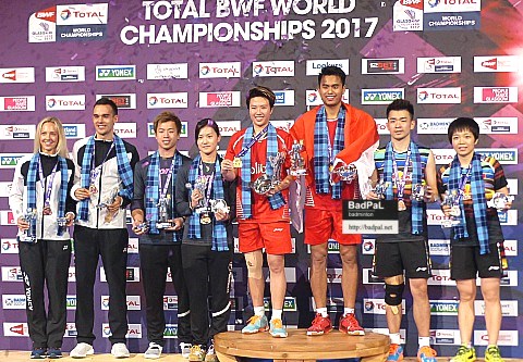 混合ダブルスは、第3シード、インドネシアのタントウィ・アーマド/リリアナ・ナッチル組が、全種目を通じて唯一、決勝に残った第1シード、中国ツェン・シウェイ/チェン・チンチェン組に第1ゲームを先取されながら逆転勝利を決め、3大会ぶり2度目の世界制覇。リオ五輪に続くビッグタイトル獲得となった