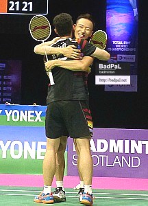 勝ったツァン選手は、「世界選手権男子ダブルスのタイトル獲得を目標にがんばってきたので、非常にうれしい」と素直に喜びを表現した。敗れたアーサン選手は、「ベストプレーができなかった」としながら、ノーシードから、第1シードの中国リュウ・ユーチェン/リ・ジュンフェイ組、第4シードの園田啓悟・嘉村健士組らを破って銀メダルを取れたことを「ありがたく思う。次回はより良い成績を残せるよう、これからさらに努力する」と述べた