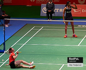 一方、初戦敗退という結果に終わったのは、佐藤冴香、三谷美菜津の2人。このうち三谷選手は、世界選手権銀メダル、韓国オープンSS優勝のプサルラ・ヴェンカタ・シンドゥ選手(インド)から第1ゲームを21-12で奪い、第2ゲームもリードされながら3点差まで詰めたが、届かず。ファイナルゲームは突き放され、マッチポイント握られてから4連続得点を決め追い上げてみせたが、時すでに遅し。17-21で敗戦となった