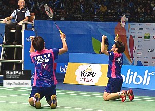 【女子ダブルス】 イ・ユリム/ペク・ハナ(韓国、第2シード)<18-21,21-11,21-3>ジャウザ・ファディラ・スギアルト/リブカ・スギアルト(インドネシア、第4シード)