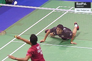 プラノイ・ハシーナ・スニルクマール(インド、世界10位)<21-11,10-21,15-21>坂井一将(世界25位※予選繰り上がり)