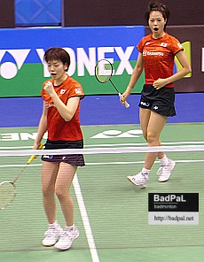 福島由紀・廣田彩花(世界5位)<21-15,21-7>シン・スンチャン/イ・ユリム(韓国、世界ランクなし)