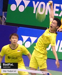 マルクス・フェルナルディ・ギデオン/ケビン・サンジャヤ・スカムルジョ(インドネシア、世界1位)<21-13,16-21,21-13>リュウ・ユーチェン/リ・ジュンフェイ(中国、世界3位)