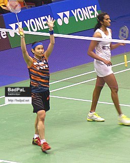 プサルラ・ヴェンカタ・シンドゥ(インド、世界3位)<21-17,21-17>ラッチャノク・インタノン(タイ、世界6位)