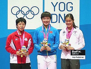あれから3年4カ月、ユース五輪でともに表彰台に並んだライバル2人、中国のホー・ビンジャオ選手(=ユース五輪金メダル、現在世界9位)、タイのブサナン・ウンバンルンパン選手(=銅メダル、同17位)より、山口選手(=銀メダル、同2位)は上位にいる
