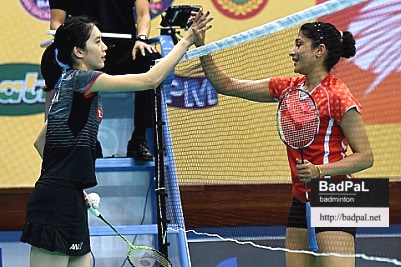 (第3シングルス)大堀彩(世界16位)<21-14,21-12>アシュウィニ・ポンナッパ(世界ランクなし)