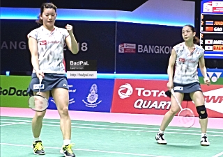 【第1ダブルス】 チェン・チンチェン/ジア・イーファン(世界1位)<21-17,21-20>ラウィンダ・プラジョンジャイ/ジョンコンパン・キッティハラクン(世界8位)