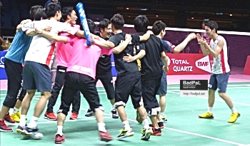 男女別の国・地域別対抗戦トマス・ユーバー杯準決勝、日本男子は、ディフェンディングチャンピオンのデンマークと最終種目までもつれる熱戦を展開。最後は、今大会1試合毎に成長を遂げてきた「第4の男」、常山幹太がチームを決勝へ押し上げた