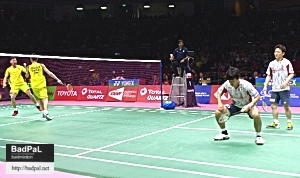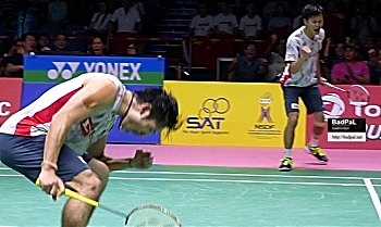 2種目目、金子祐樹・井上拓斗組の相手は、世界チャンピオンのツァン・ナン/リュウ・チェン組だが、前回対戦した昨年11月の香港オープン(当時の格付けはスーパーシリーズ)では、ファイナルゲーム21-19で白星を挙げており、勝機はあった。しかし、前回の敗北を踏まえ、対策を講じてきた相手への対応が遅れ、ストレート負けを喫した
