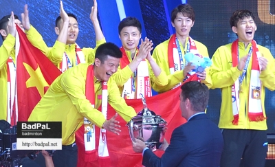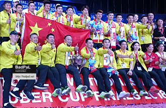 男女別の国・地域別対抗戦トマス・ユーバー杯最終日、トマス杯決勝が行われ、日本男子は、策も講じて第1シード中国の牙城を揺るがした。しかし打ち崩すには至らず、2大会ぶりの優勝は果たせなかった