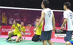 しかし、2人はトマス杯決勝という大舞台で化学反応をみせた。ペアとしての分析データのない相手にとまどうアジアチャンピオンに積極果敢に挑み、躍動した。オープニングゲームを21-17で競り勝つと、第2ゲームは19-21の僅差で落とすが、ファイナルゲームも一歩も引けを取らない接戦を演じ、前日優勝を遂げた女子全員を含む日本チームの声援を受けながら、20-18とマッチポイントをつかむ