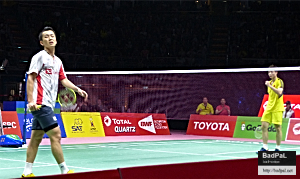 【第3シングルス】リン・ダン(世界8位)<打ち切り>常山幹太(世界34位)