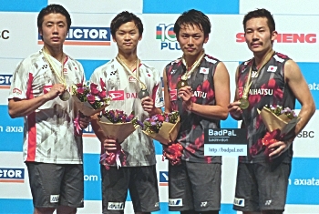 なお、BadPaL が遠藤選手に、いみじくも5月の男子国・地域別対抗戦トマス杯の決勝で敗れ準優勝に終わった日本が男子ダブルスの表彰台を独占し、その強さを世界に示す形になったが、と水を向けると、「トマス杯で悔しい思いをした2人(嘉村、遠藤)、いい経験をした2人(園田、渡辺)が、それぞれ想いを持って戦った(結果)」と答えた