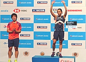 マレーシアオープン(SUPER750)決勝、高橋礼華・松友美佐紀組が3度目の正直で、この大会初めて頂点に立った。園田啓悟・嘉村健士組はシングルス、ダブルスを通じて日本男子初のチャンピオンとなった