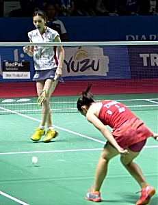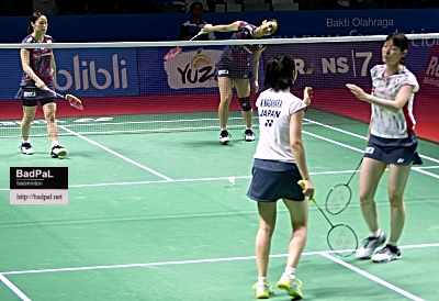 女子ダブルスは、前週マレーシアオープンで優勝した今大会第5シードの高橋礼華・松友美佐紀組が、1日に(マレーシアオープンの)決勝を戦った後、「初日(3日)から試合で、気持ちの準備ができていない部分があった」と認めながらも、初戦突破を果たした。そのほか、第2シードの福島由紀・廣田彩花組、第4シードの米元小春・田中志穂組もそろって勝ち、順当に2回戦へ進んだ