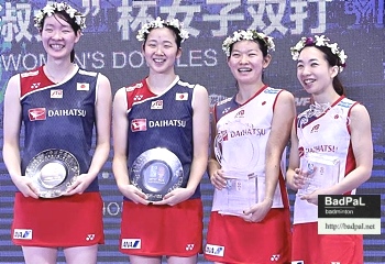 中國オープン準々決勝、世界ランク1位と世界チャンピオンによる同国対決が行われた女子ダブルス、永原和可那・松本麻佑組が勝ち、五輪チャンピオンの高橋礼華・松友美佐紀組とともに準決勝に進んだ