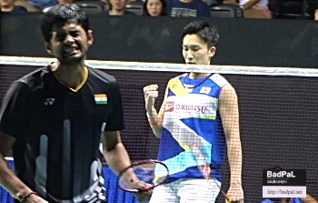 桃田賢斗(第1シード)<19-21,21-14,22-20>(インド)B.サイ・プラニース