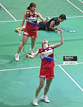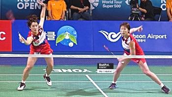 日本のもうひとペア、第2シードの高橋礼華・松友美佐紀は、オープニングゲームを奪いながら、会場の声援に後押しされた韓国1番手シン・スンチャン/イ・ソヒにファイナルゲーム18-21で逆転負け