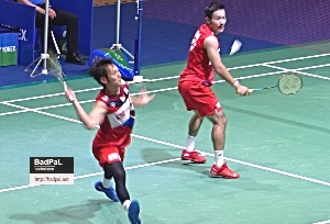 (インドネシア、第4シード)<10-21,21-15,13-21>ワン・ツーウェイ(台湾)ジョナタン・クリスティ