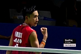 桃田賢斗(第1シード)<15-21,21-15,21-16>(台湾)ワン・ツーウェイ