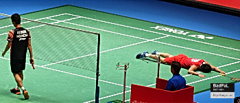 前週のデンマークオープン(SUPER750)優勝の後、同じ格付けの今大会も1、2回戦続けてフルゲームを戦い抜いて勝ち上がった世界ランク1位だが、3試合目、遂にアンソニー・シニスカ・ギンティン(インドネシア)に止められた