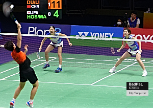 リ・インフェイ/ドゥ・ユエ(中国、第5シード)<21-15,21-10>(※予選勝ち上がり)星千智・松田蒼