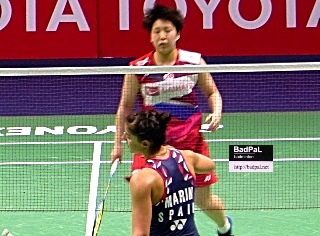 山口茜(第1シード)<14-21,23-21,21-18>(スペイン、第4シード)カロリナ・マリン