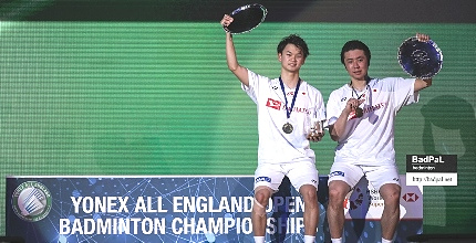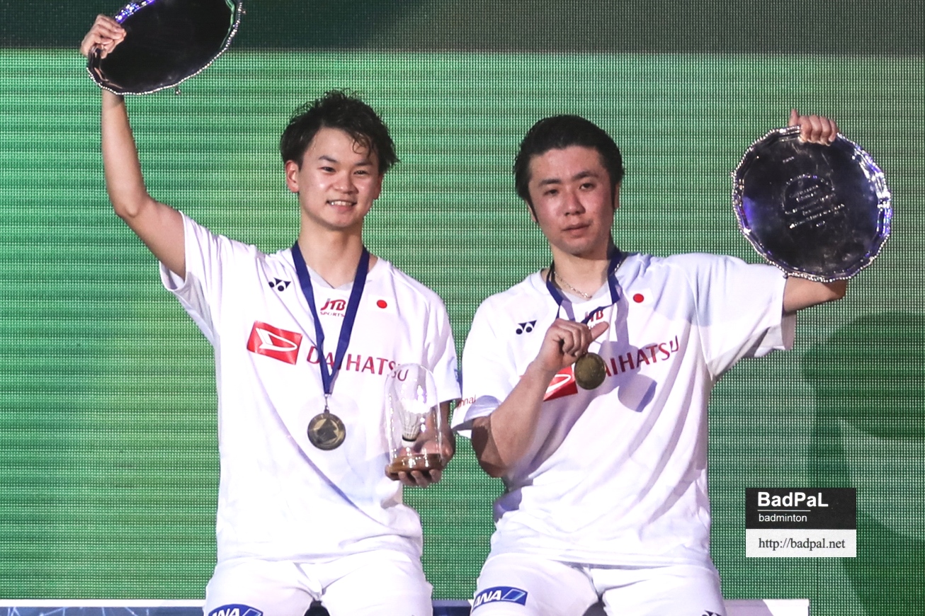 全英オープン(SUPER1000)決勝、最も伝統ある大会で、日本が唯一取れていなかった男子ダブルスのタイトルを、遠藤大由・渡辺勇大が世界ランク1位を破ってつかんだ。初のメジャータイトル獲得を遂げた福島由紀・廣田彩花とともに、110回目の記念大会にインパクトを残した