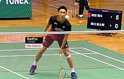 ① Kento MOMOTA (Nat’l A)<21-12,21-14>Koshiro MORIGUCHI (Highschool)