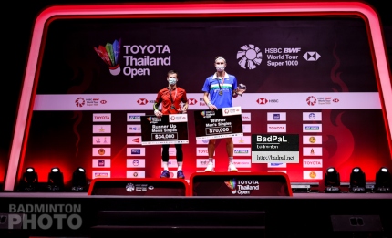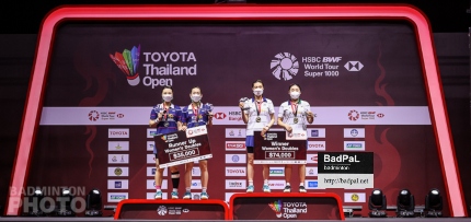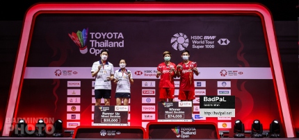 2020年3月の全英オープン(SUPER1000)準決勝の再戦だったが、実力ある韓国のソ・スンジェ/チェ・ユジョンに第2ゲーム、20-19とゲームポイントを握られファイナルゲーム突入の可能性はあった。しかし、通常なら苦しい時の後押しとなる会場の声援がない中、タイペアが踏ん張り、3連続得点を決め、「自国で2週連続優勝」で大会を締めくくった
