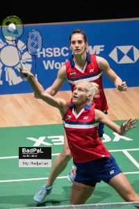 カロリナはこの日、アジア勢ポーンパウィー・チョチュウォン(第3シード)とファイナルゲーム20-19までもつれる試合となり、今大会初めてゲームを落とした。シンドゥはヨーロッパ勢ミア・ブリクフェルト(第4シード)相手にオープニングゲームを20-20から競り勝つと、そのままストレート勝ちで決勝進出を決めた