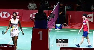 山口茜(日本、グループB1位)<15-21,21-15,19-21>プサルラ・ヴェンカタ・シンドゥ(インド、グループA2位)